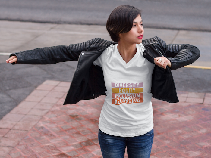 This DEIB V Neck Diversity Equity Inclusion Belong V Neck Unisex Jersey Short Sleeve V-Neck Tee looks great at work, under a suit jacket or flannel or alone! You will get lots of compliments on this Vneck Diversity T shirt. Looking good on both men and women, this soft jersey tee is comfortable enough to wear all day long. High quality print will make it an instant favorite in every wardrobe. .: 100% airlume combed and ringspun cotton (fiber content may vary for different colors) .: Light fabric (4.2 oz/yd² (142 g/m²)) .: Retail fit .: Sewn in label .: Runs true to size
