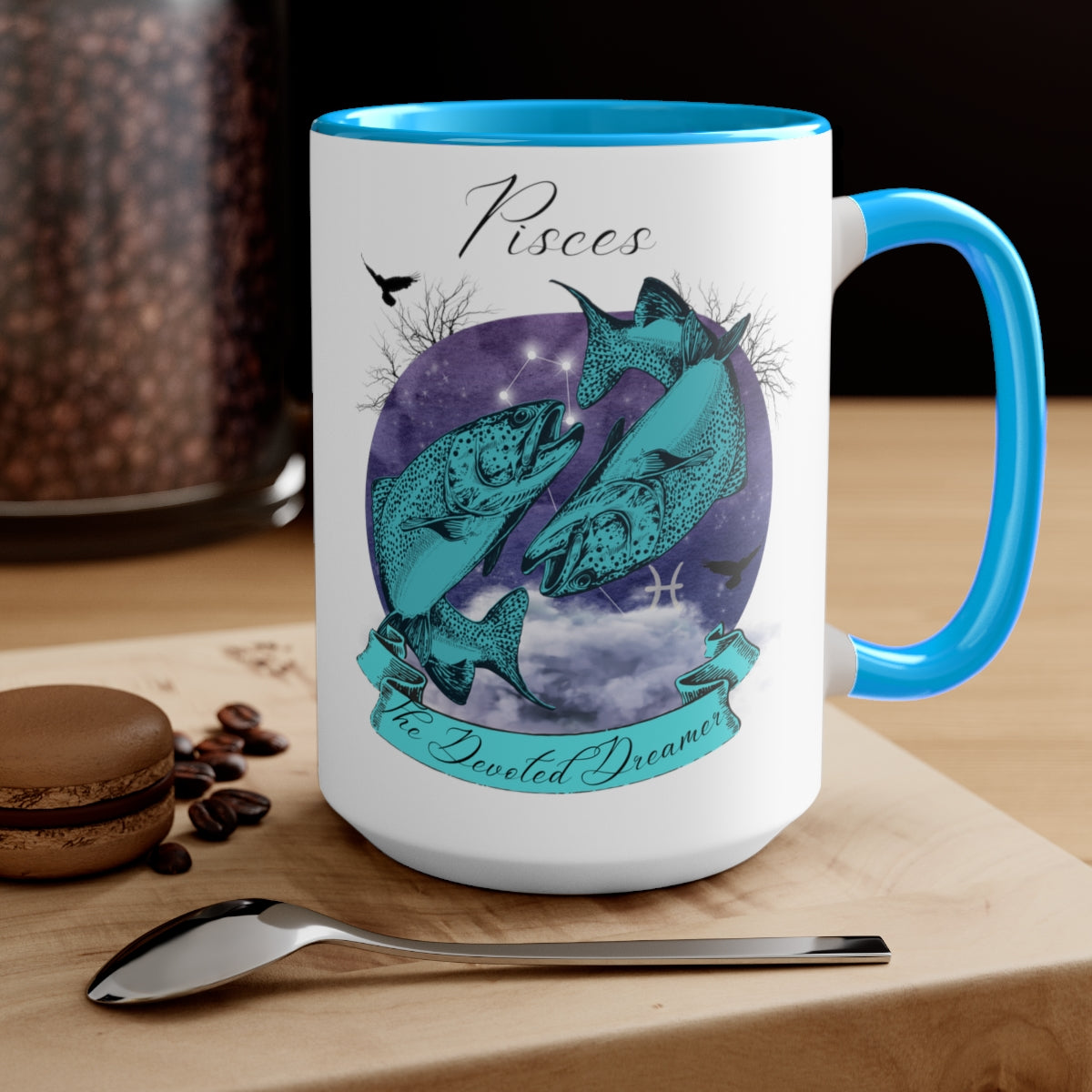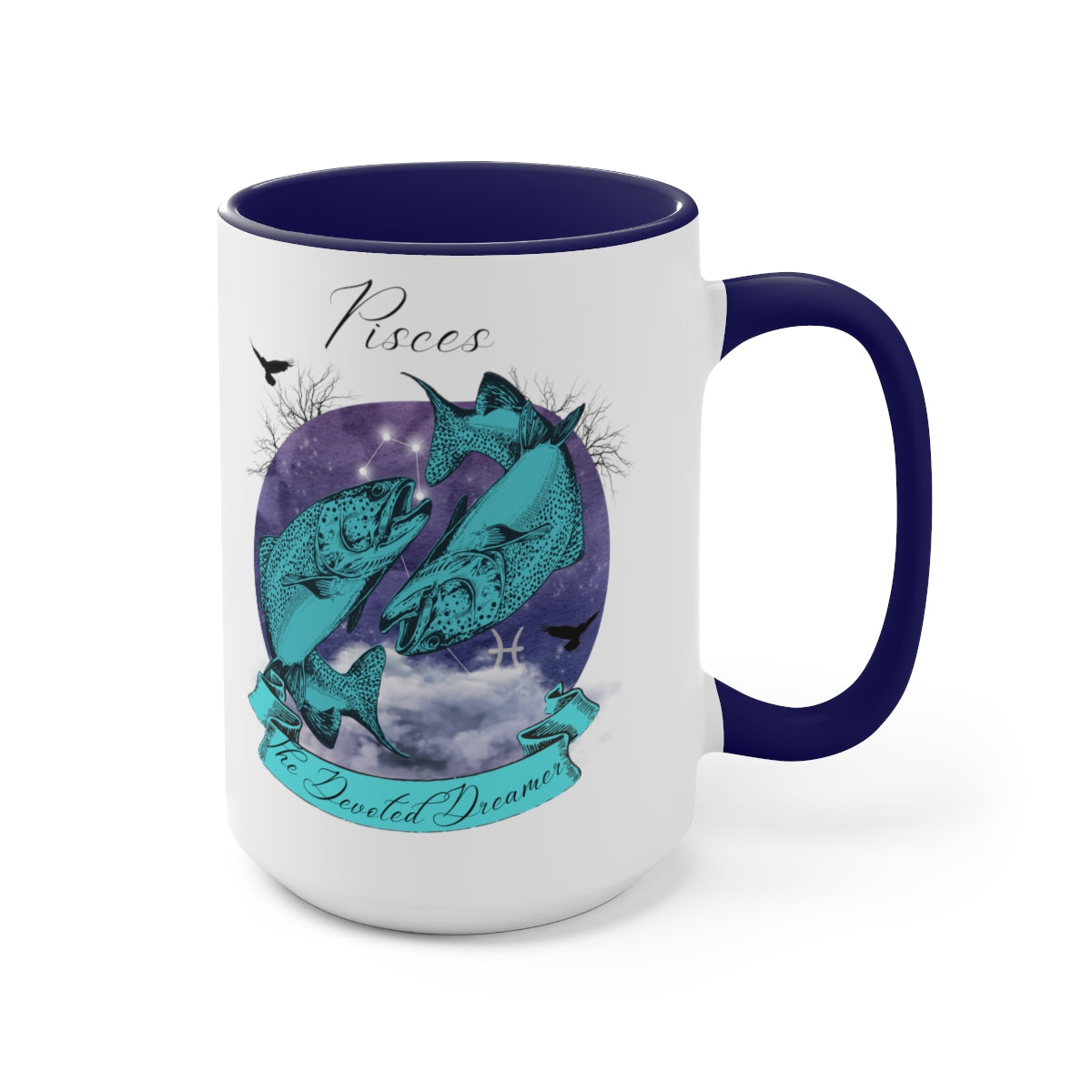 Pisces Zodiac The Devoted Dreamer Two-Tone Coffee Mugs, 15oz | Zodiac Gift Mugs