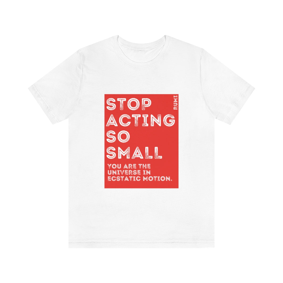Rumi Quote, Stop Acting So Small You Are The Universe in Ecstatic Motion Red and White Graphic | Unisex Jersey Short Sleeve Tee